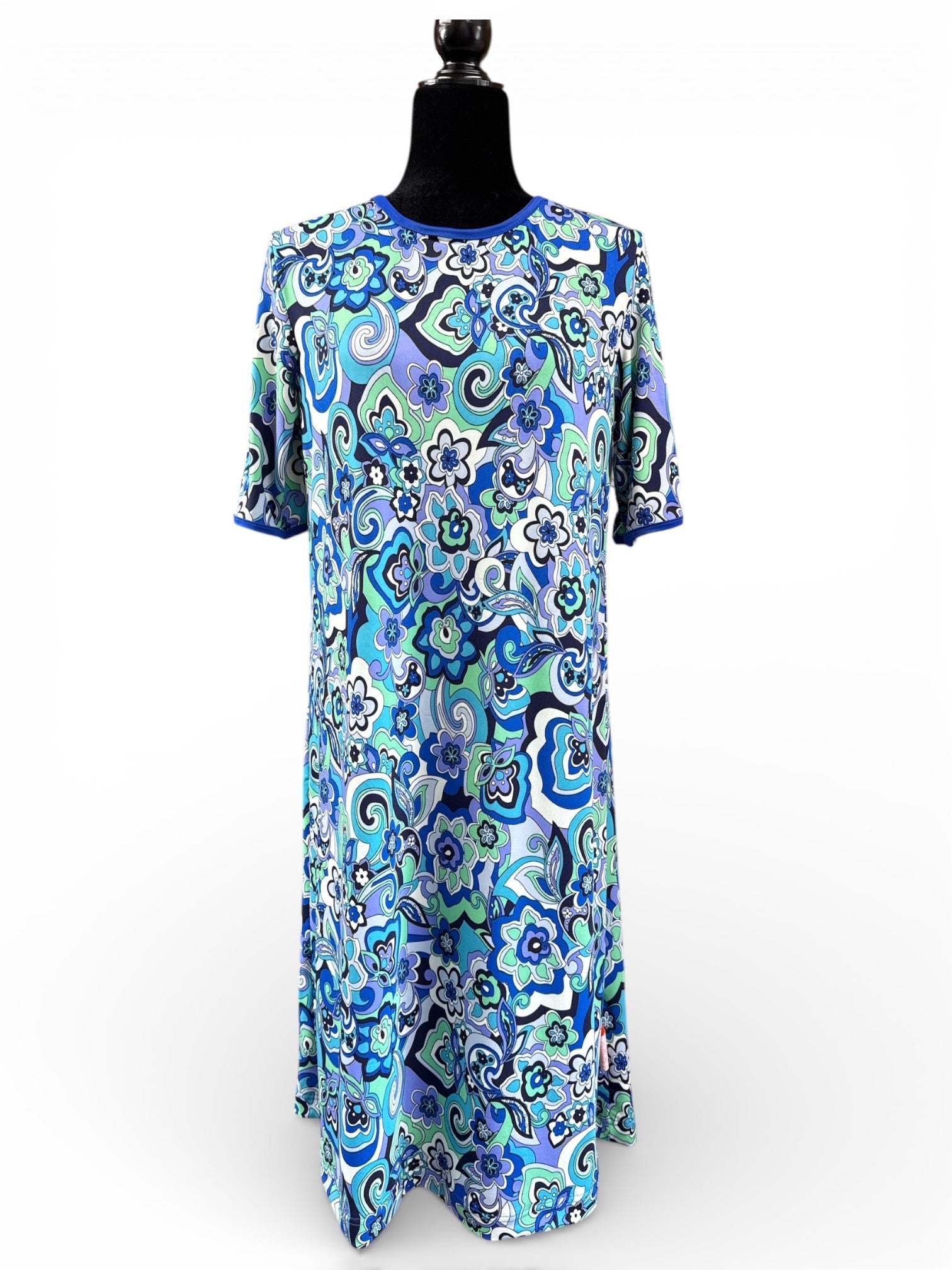 Ornée d'un motif floral lumineux, elle séduira par ses détails raffinés : encolure ronde avec bords contrastants et manches au coude.